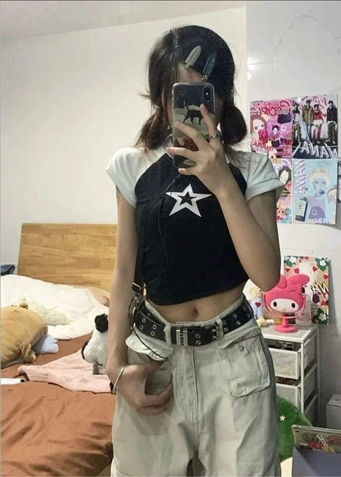 yıldızlı crop tişört