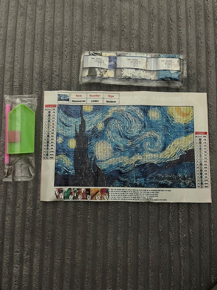 30x20 cm boyutunda içerisinde kalemi, boncukları ve plastik tablası çıkmaktadır