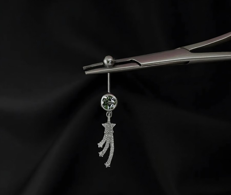 Yıldız ve zarif gümüş püskül detaylı, rock punk tarzında kadın piercingi.
