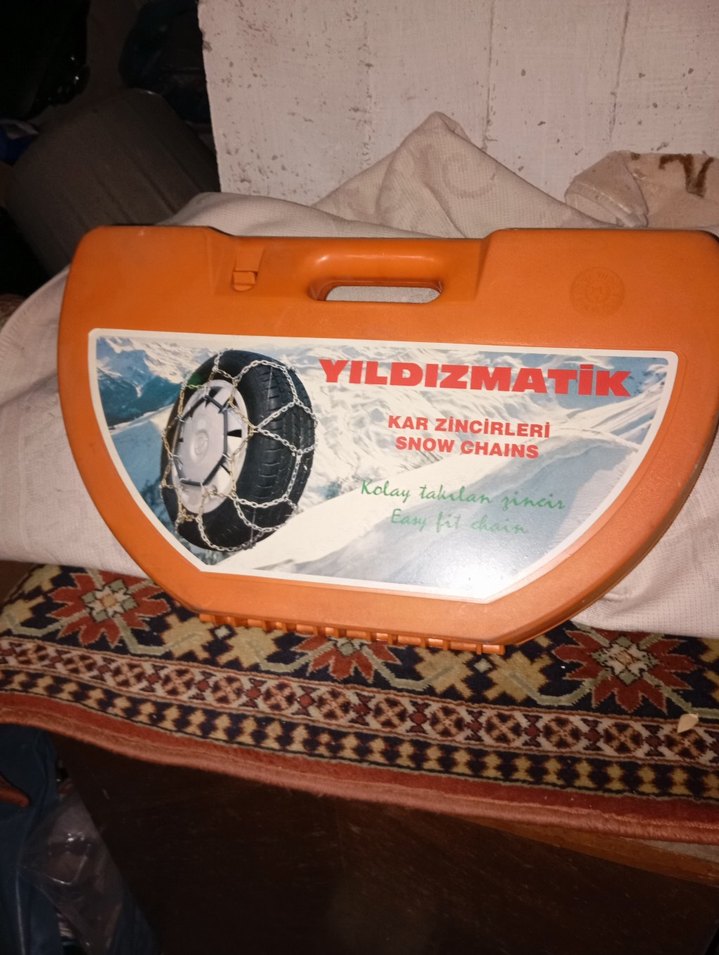 Turuncu kutuda Yıldızmatik marka araç lastiği kar zincirleri, kolay takılabilir özelliğe sahiptir.