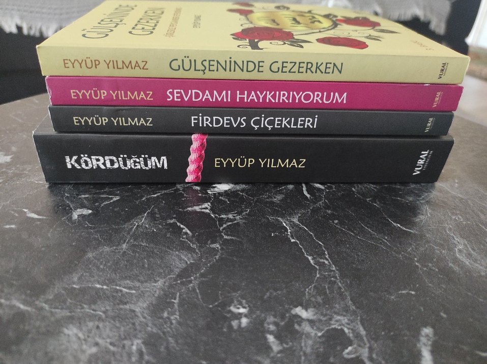 Yılmaz'ın 'Gülseninde Gezerken', 'Sevdamı Haykırıyorum', 'Firdevs Çiçekleri' ve 'Düğüm' adlı dört romanından oluşan set. Adet fiyatı