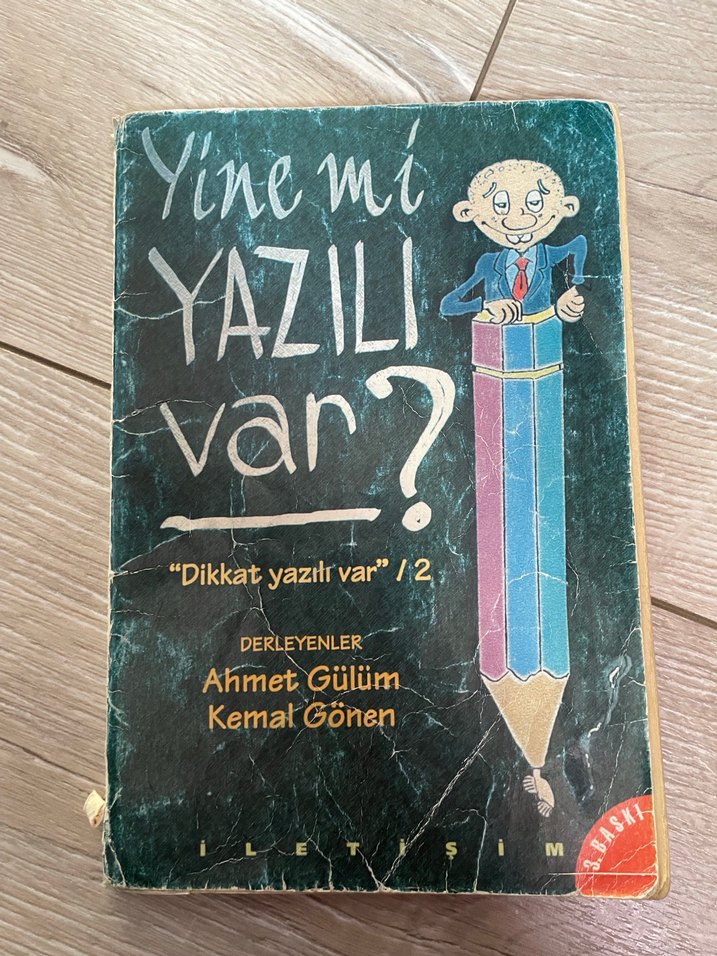 Ahmet Gülüm ve Kemal Gönen'in derlediği "Yine mi Yazılı Var?" adlı mizah kitabı, büyük kalem tutan karakter çizimiyle dikkat çekiyor.