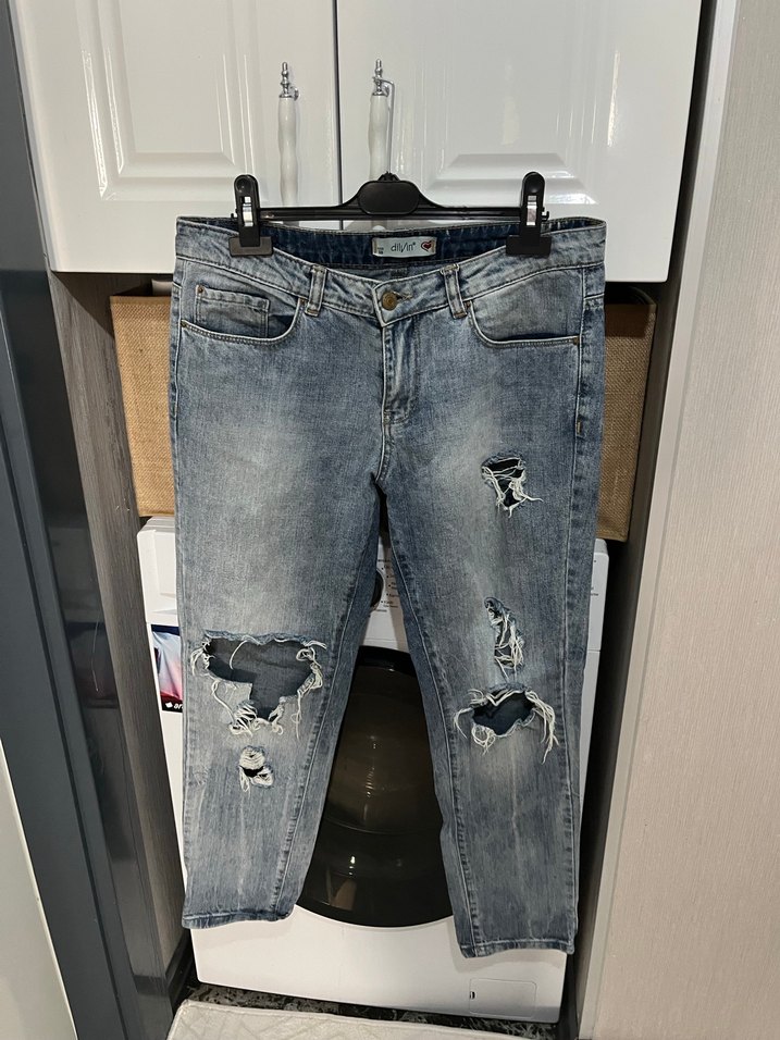 Yırtık Detaylı Bol Kesim Kadın Denim Pantolon