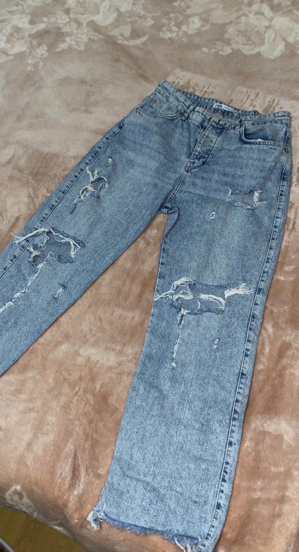 yırtık detaylı ve kemerli bol kesim kot pantolon, günlük rahat sokak stili için uygundur.