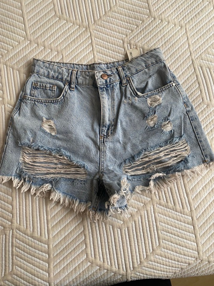 Yırtık Detaylı Denim Mini Şort