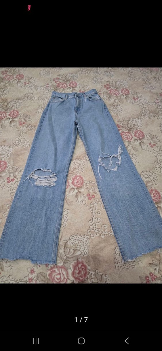 Yırtık detaylı, geniş paça