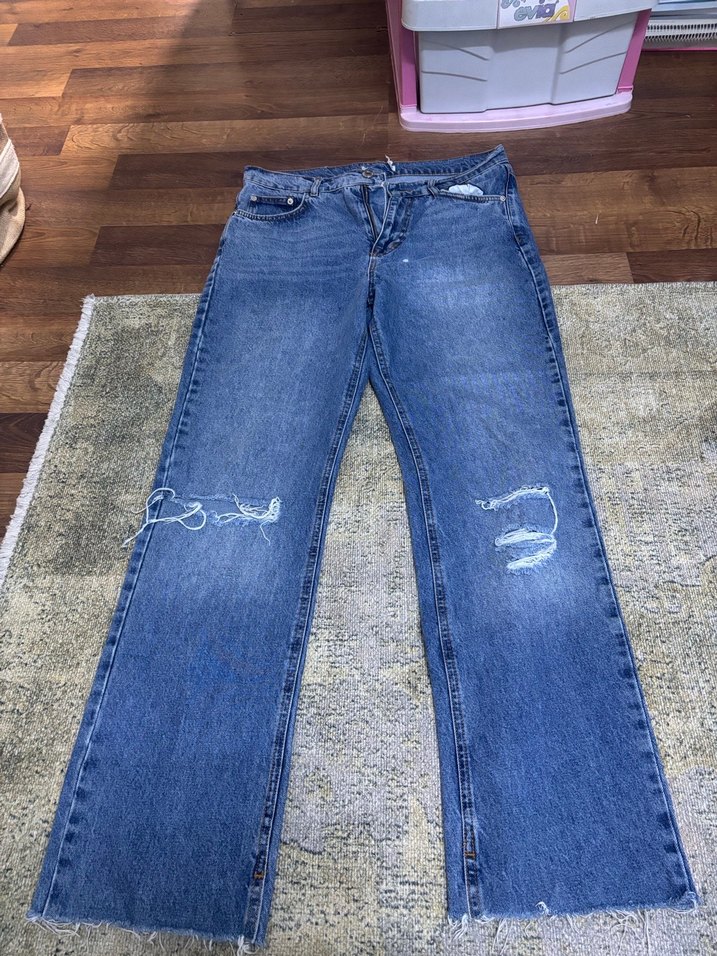 Gri mavi tonlarında, yırtık detaylı ve yarım boy, bol kesim kadın jean pantolon. Günlük sokak tarzına uygun rahat bir model.