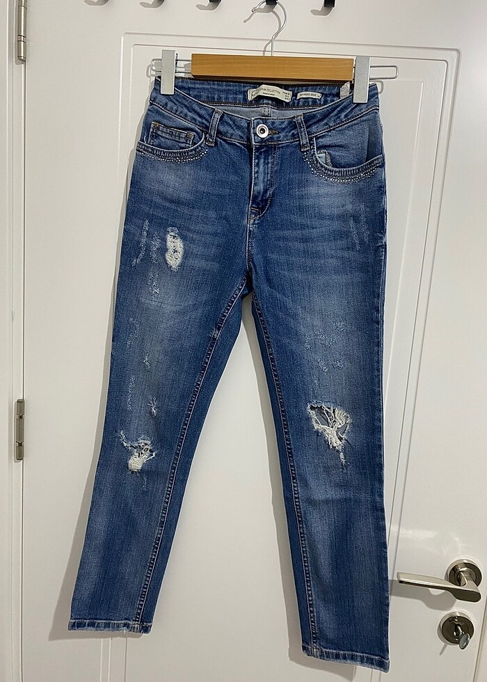 Çok severek kullandım, dar geldiği için satışta. Taşlarında düşmeler var ama belli olmuyor. Sol dizdeki yırtık büyük biraz, tercihinizi ona göre yapı , çok şık, batik markanın iyi olduğu dönemlerden kalma bir ürün.