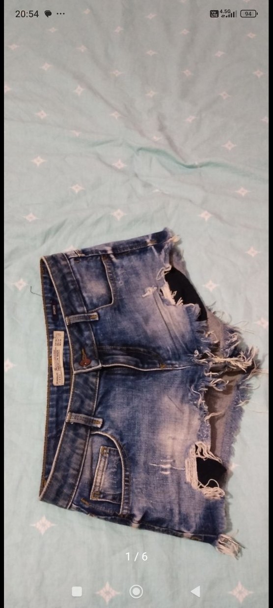 Yırtık detaylı, kemerli, mavi kadın kot şort. Sıkı kesim ve kısa boy, rahat sokak stili için uygundur.