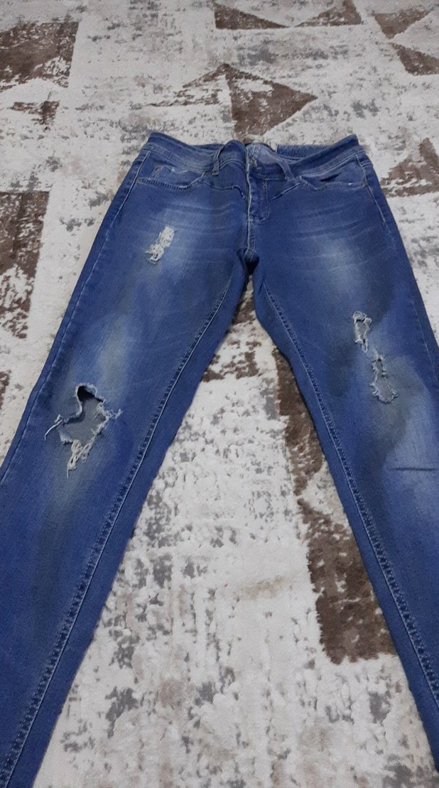 Yırtık Detaylı Mavi Denim Kadın Pantolon