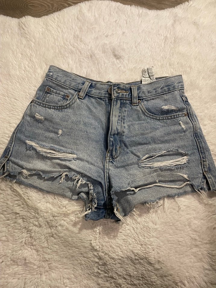 kısa boy yırtık detaylı mavi kot şort rahat az kullanıldı