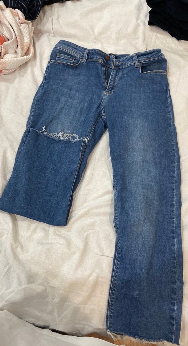 Yırtık Detaylı Mavi Midi Kot Pantolon