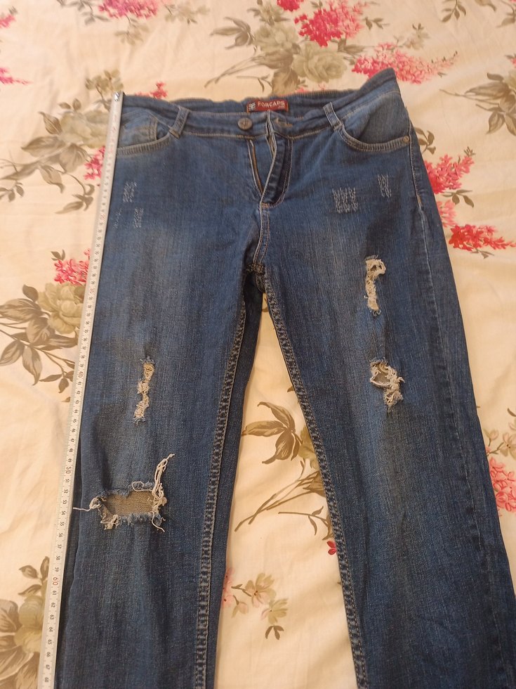 Yırtık detayları ve yırtık Jean kot pantolon, midi boy, günlük rahat kullanım için uygundur. Trend sokak stili için ideal.Beli likralidir