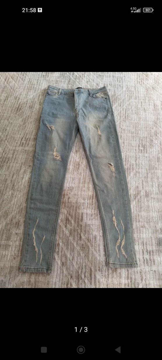 Gri renkte, yırtık detaylı ve rahat kesime sahip bu kot pantolon, günlük kullanıma uygun şık ve rahat bir stil sunar.