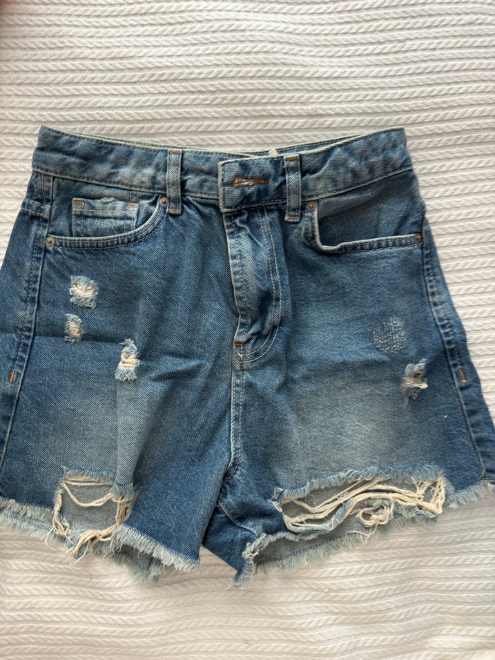 Gevşek kesim, yırtık detaylı ve tokalı mini kot şort. Günlük kullanıma uygun, rahat ve trend sokak stili şort.