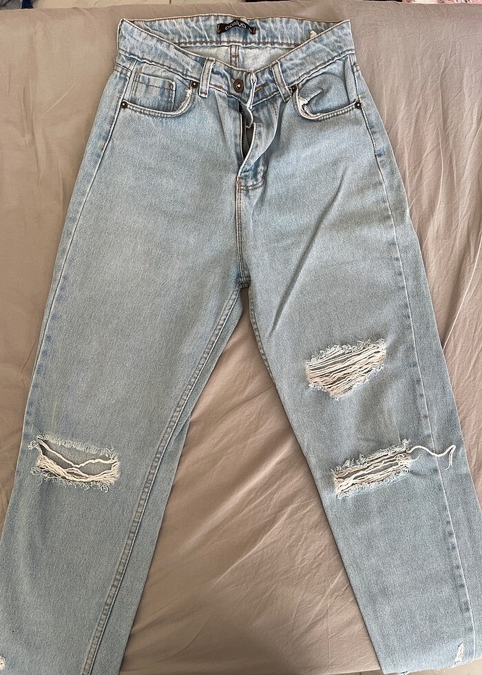 Yırtık kot pantolon renginde solma gibi bir durum yok hala iyi durumda beğenmiyorum o yüzden uygun fiyata koyuyorum