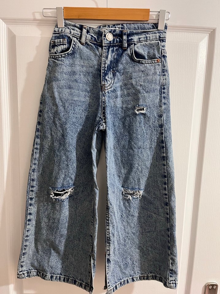 Yırtıklı Bol Paça Midi Kot Pantolon
