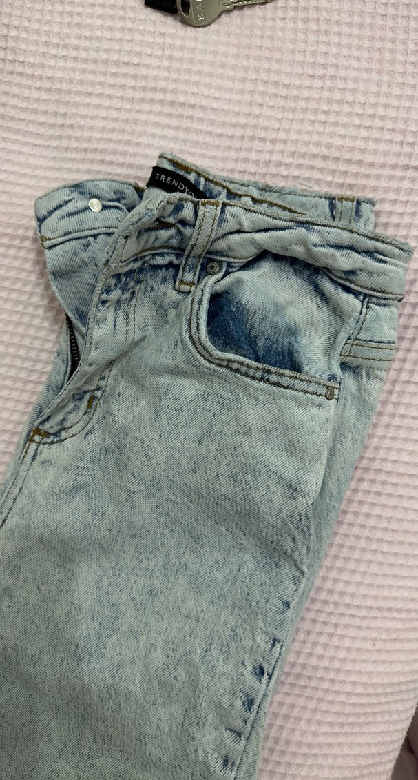 Yırtmaç detaylı mavi kadın kot pantolon, günlük rahat kullanım için uygun.