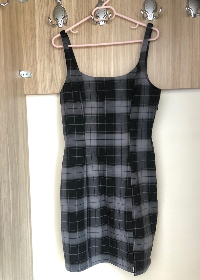 yırtmaç detaylı h&m marka ekoseli elbise sorunsuz yeni gibi sadece 1 defa giydim m beden ben s giyiyorum s ye de tam olur