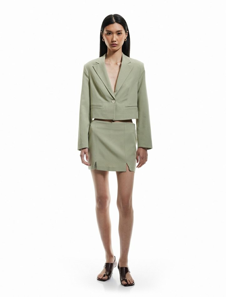 Yırtmaç Detaylı Keten Mini Şort Etek