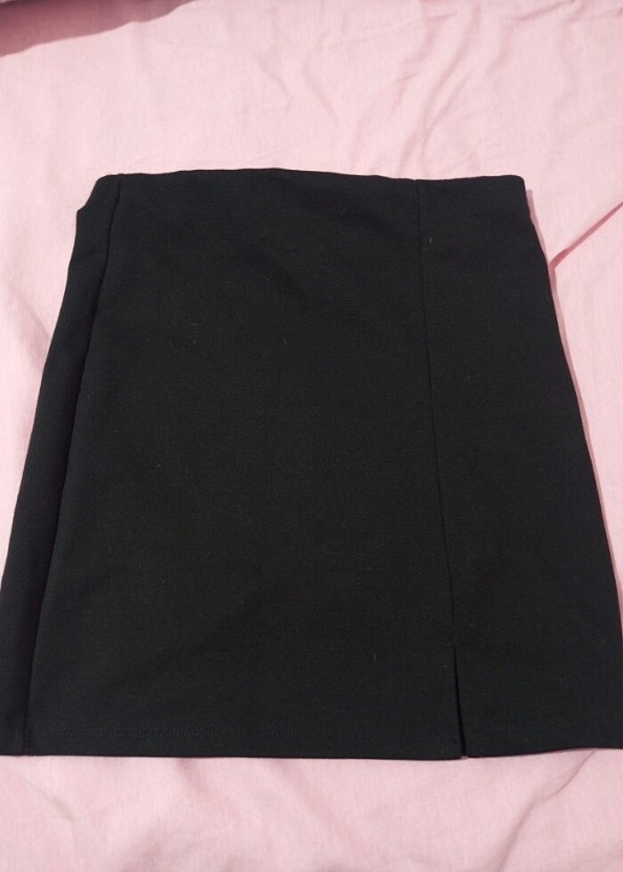 Siyah düz yırtmaçlı etek. Kilo aldığımdan dolayı satıyorum. Bel:34 cm Uzunluk:41 cm