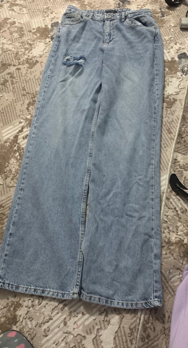 Geniş kesim, yırtmaç detaylı mavi kadın kot pantolon. Sokak stiline uygun, uzun ve rahat kumaşlı, günlük kullanıma uygundur. PAZARLIK PAYI VAR