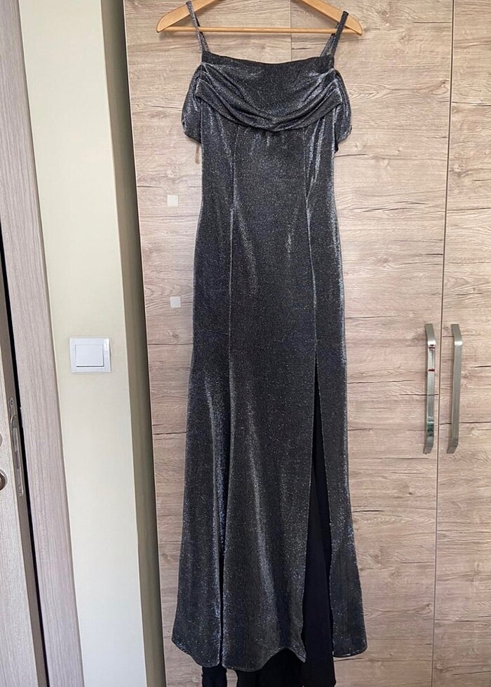 yırtmaçlı gri abiye
