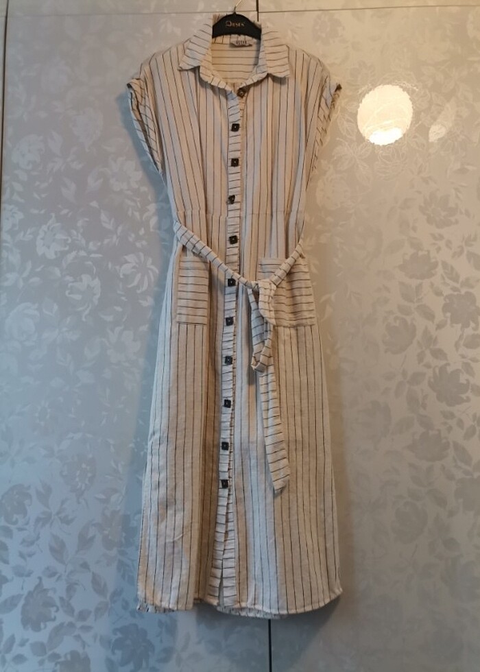 Yırtmaçlı keten elbise