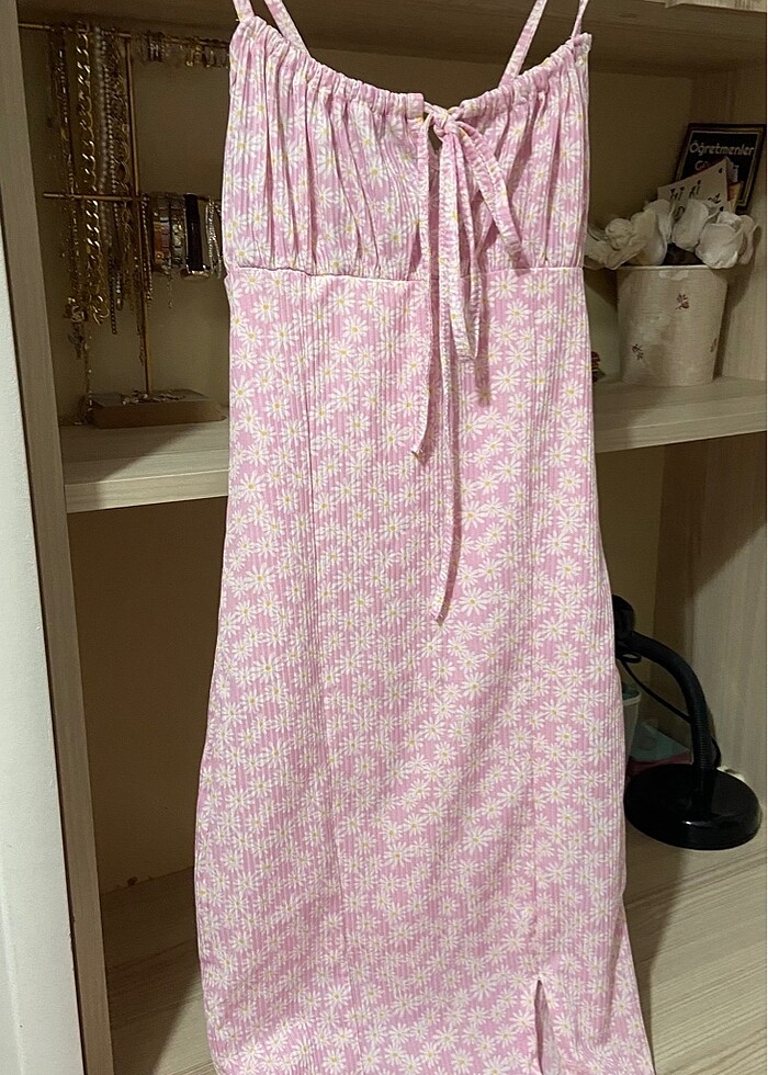 YIRTMAÇLI PAPATYALI MIDI ELBİSE