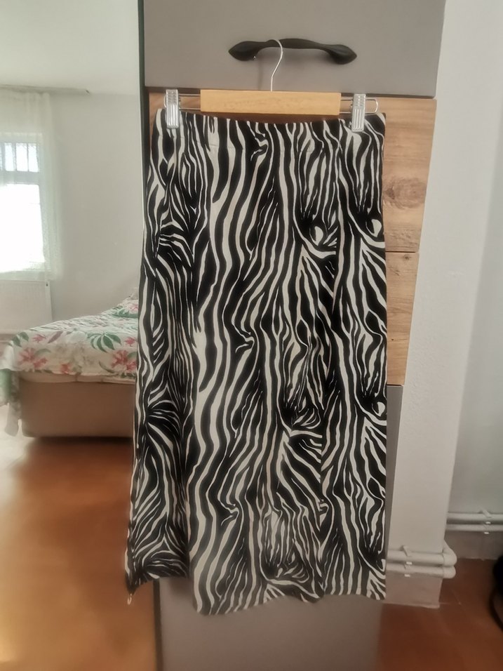 Yırtmaçlı Zebra Desen Uzun Etek