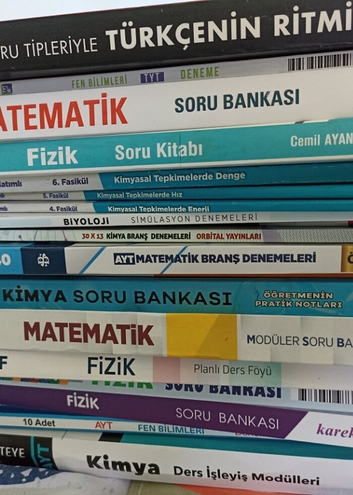 TANESİNİ 60TL YANİ ÇOK UCUZ Türkçe'nin ritmi içinde 10 test çözülmemiştir temizdir baya kalın Türkçeyi tek kaynakta halletmek için iyi bir seçenek ÇAP tyt Fen denemeleri 3 tanesini çözdüm gerisi temiz TOPRAK tyt matematik soru bankası baştaki 2 testini çözdüm gerisi tertemiz sıfır PDF 10. sınıf fizik planlı ders föyleri ilk föyde 20 sayfa kullanılmış gerisine dokunmadım bile tertemiz KAREKÖK 10. sınıf fizik soru Bankası tamamen temiz sıfırdır