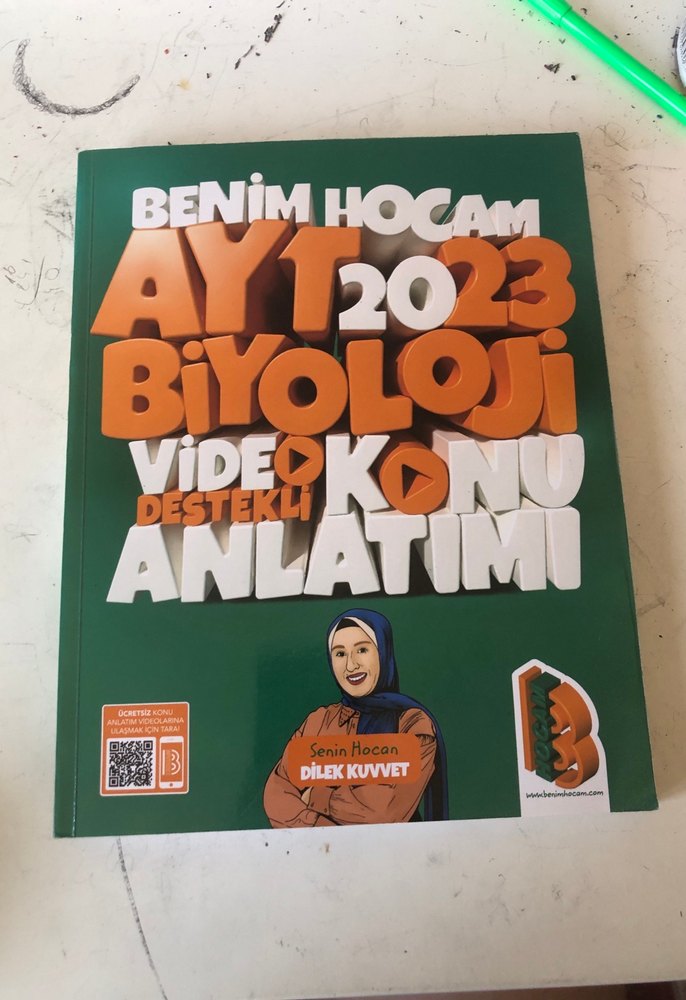 Dilek Kuvvet tarafından hazırlanan AYT 2023 Biyoloji video destekli konu anlatımı kitabı. Sadece ilk 2 sayfasının altı çizili onun dışında dokunulmadı bile.