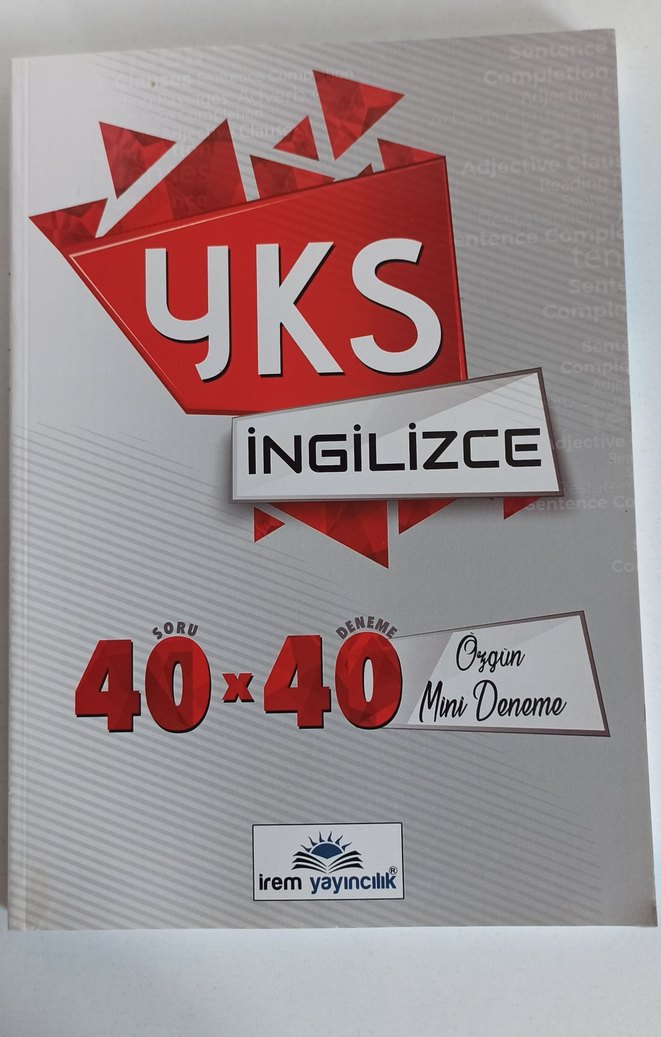 İrem Yayıncılık tarafından hazırlanan YKS İngilizce 40x40 mini deneme kitabı, özgün sorularla hazırlanmış pratik testler içerir. Çok güzel bir kitaptır hiç kullanılmadı