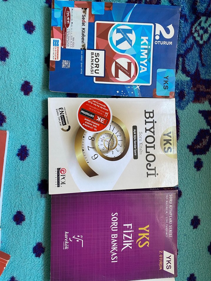 Kimya, Biyoloji ve Fizik YKS soru bankası seti, detaylı soru ve cevaplarla hazırlanmıştır. Sedat Kitabe ve Karekök yayınevlerinden.