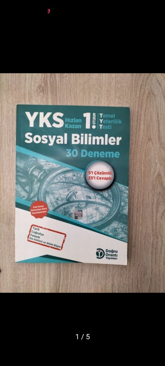 Doğru orantı yayınları YKS sosyal bilimler 30 deneme hediyedir. Bomba notlar tyt özet notlar olup 30 sayfalarındadır. Sadece coğrafyada kurşun kalem ile el yazısı vardır.Ve fosforlu kalem ile bazı kitaplarda bazı cümlelerin altı çizilidir. Yaprak testler limit yayınlarına ait olup sadece Türkçe ve coğrafyanın ilk testleri çözülmüştür Yaprak testler coğrafya,geometri,tarih,fizik kimya 24 testten oluşmaktadır. Biyoloji 16 testten oluşmaktadır. Temel matematik ve türkçe 32 testten oluşmaktadır. Yaprak testlerin ve özet notların kitap incelikleri 4. fotoğrafta yer almaktadır. Hediye olarak göndermek istediğim 30'u denemenin kalınlığı da son fotoğrafta bulunmaktadır.