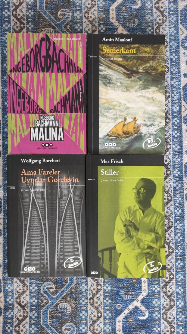 Wolfgang Borchert, Amin Maalouf, Max Frisch ve Ingeborg Bachmann'ın eserlerinden oluşan kitap seti. **Fiyat temsilidir, bilgi için mesaj atabilirsiniz.** Ama Fareler Uyurlar Geceleyin Semerkant Malina Stiller