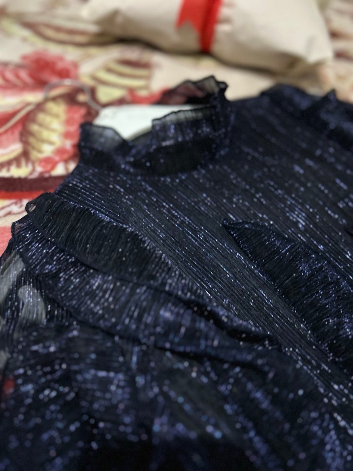 Lacivert kendinden simli tesettür abiye elbise. Hiçbir sorunu yok. Çok şık bir elbise. M beden yazıyor ama ben 42 beden ile giydim her bedene uyacak bir elbise. Ölçü sorabilirsiniz