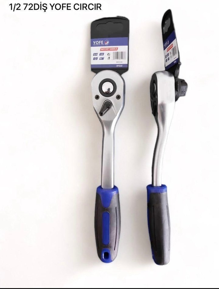 YOFE 1/2 CIRCIR anahtarı, rahat tutuş için gri ve mavi saplı, hassas tork uygulaması için tasarlanmıştır. ⚙️