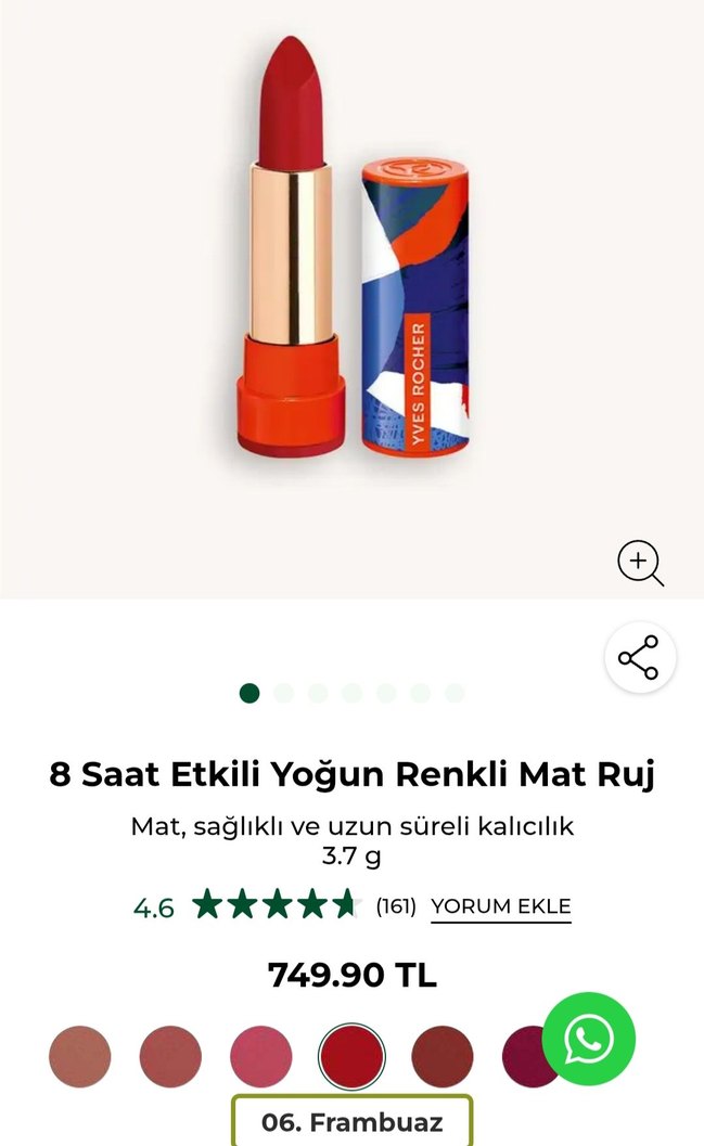 Sağlıklı ve uzun süre kalıcı mat kırmızı ruj. 8 saat etkili yoğun renk, 3.7 g.