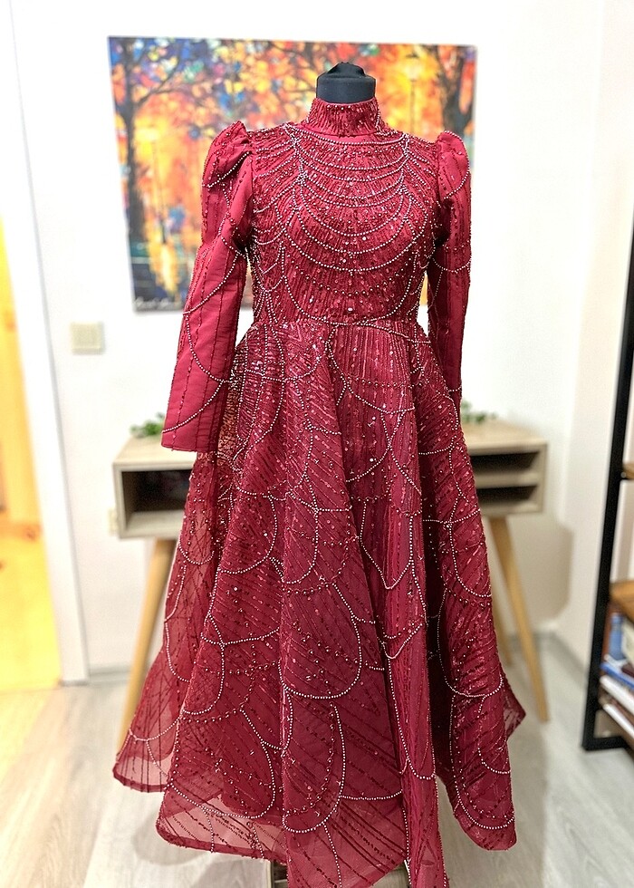 SATILIK 7500 tl Sadece 1 kere giydim. Göğüs 95 bel 85 boy 135 cm arkası ipli 38-40-42 bedenlere uyumu kendi kınamda bordo pelerinle giydim, tacı da var isteyenlere yanında kına ürünlerini de göndereceğin