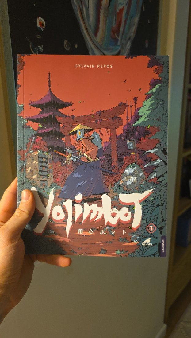 Sylvain Repos'un Yojimbot II adlı grafik romanı, samuray figürü ve detaylı arka planıyla dikkat çekiyor. Geleneksel ve modern ögeler bir arada.