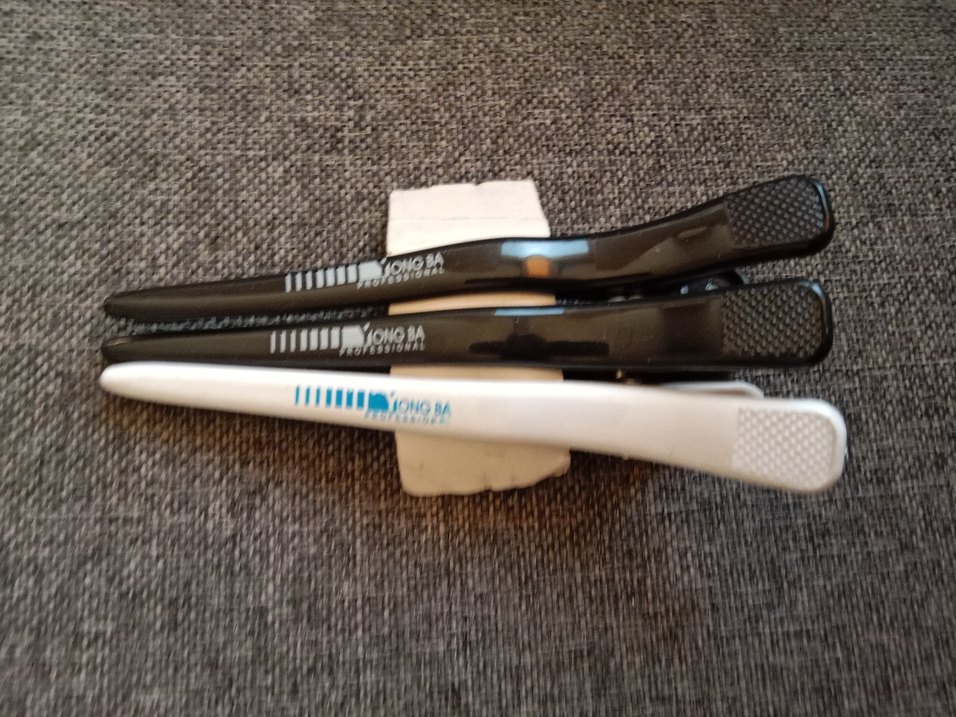 Yong Ba markasına ait siyah ve beyaz saplı profesyonel kuaför tokası seti.
