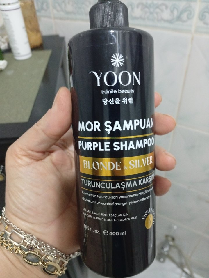 Yoon mor şampuan, sarı ve gri saçlardaki turuncu-sarı tonları nötralize eder. 400 ml şişede sunulur. 1 kez kullandım saçımın rengini değiştirdim