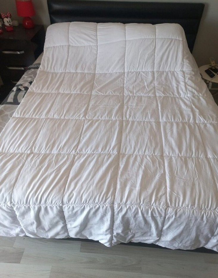 Yumuşak ve rahat dokulu, düz kapitone tasarımlı beyaz yatak yorgan