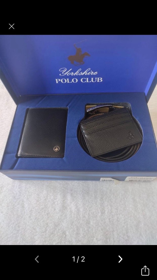 Yorkshire Polo Club erkekler için siyah deri cüzdan, baskılı kartlık ve uyumlu kemer içeren modern klasik tarzda set. 115 cm