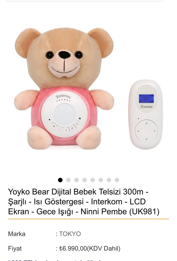 Yoyko Bear dijital bebek telsizi 300m menzile, şarjlı, ısı göstergeli, interkomlu, LCD ekranlı, gece ışıklı ve ninni fonksiyonlu pembe renktedir.
