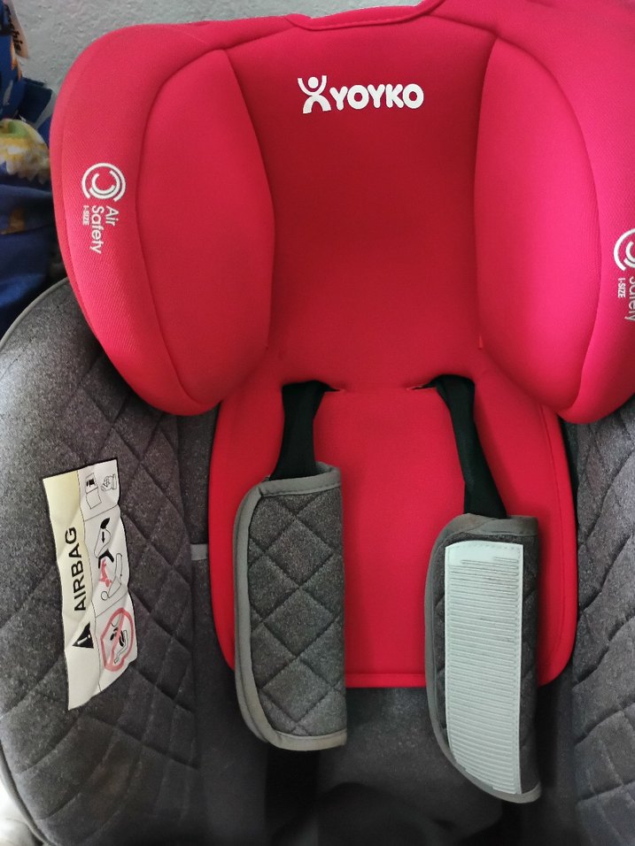 Ayarlanabilir kayışlara ve sağlam arka desteğe sahip gri çocuk oto koltuğu, güvenli ve rahat yolculuk sağlar.