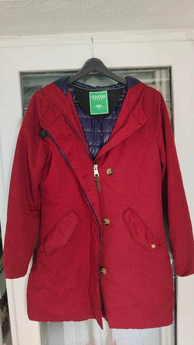 Koltuk alti eni 50 cmdir. Omuzdan aşagi 82 cmdir. Bordo renkli kadın ceketi, düğmeli ön ve kesimli yaka detayına sahiptir. Uzun kollu, dar kesim yumuşak ve sıcak kumaştan üretilmiştir.