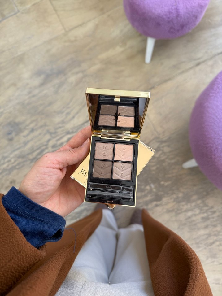 Dörtlü bej tonlarında göz farı paleti, aynalı kompakt kutuda ve aplikatörlerle birlikte sunulur. Doğal makyaj için ideal.