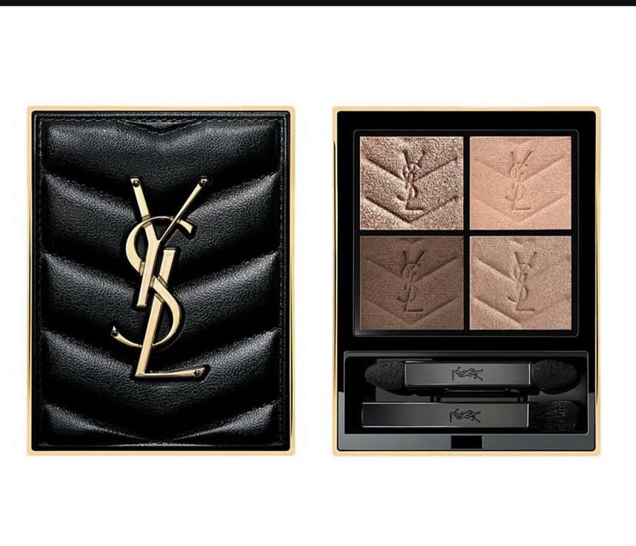 YSL göz farı paleti, siyah şık kutuda kabartmalı logo ve yumuşak dokulu dört bej ve koyu renkten oluşur.